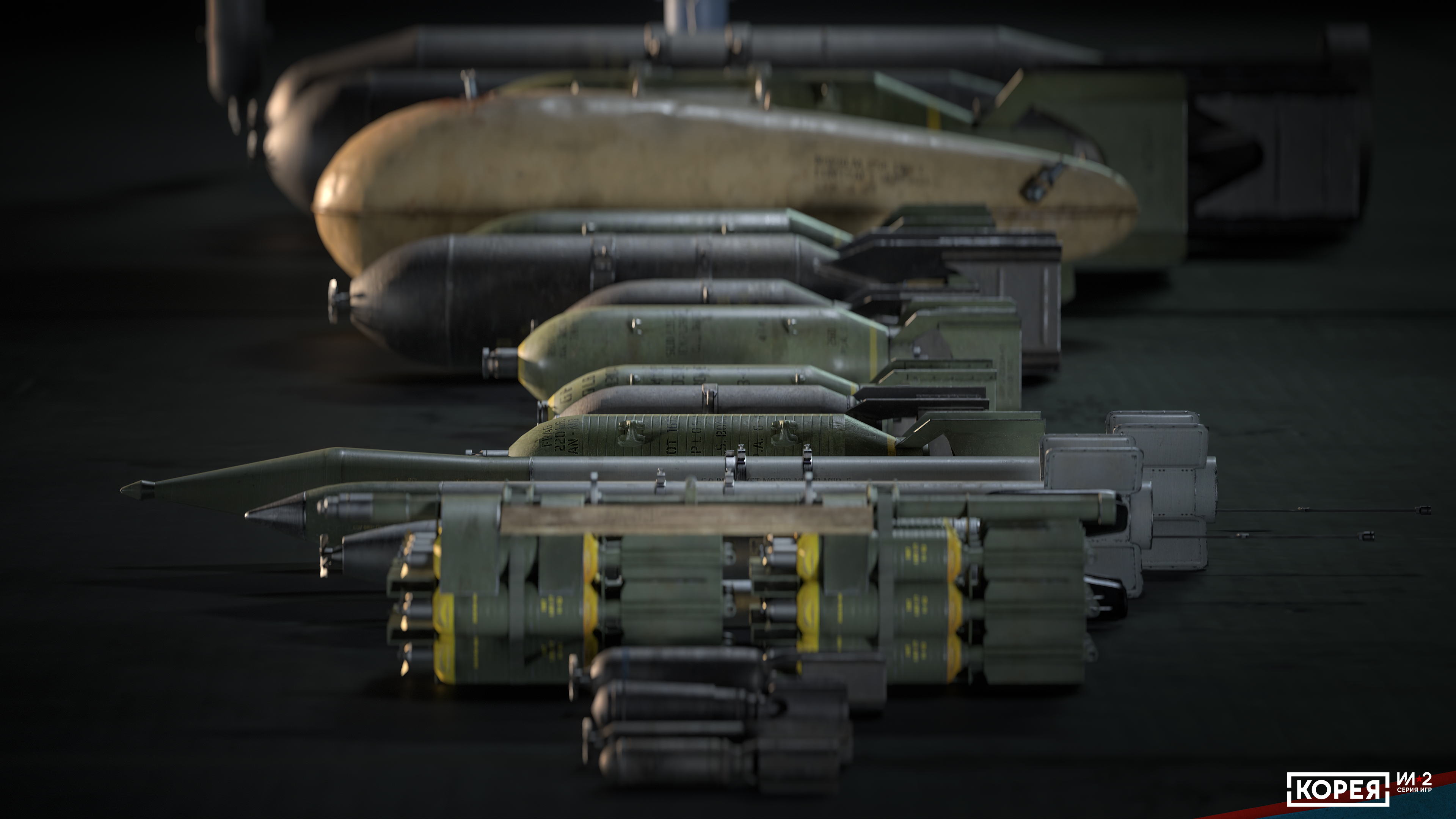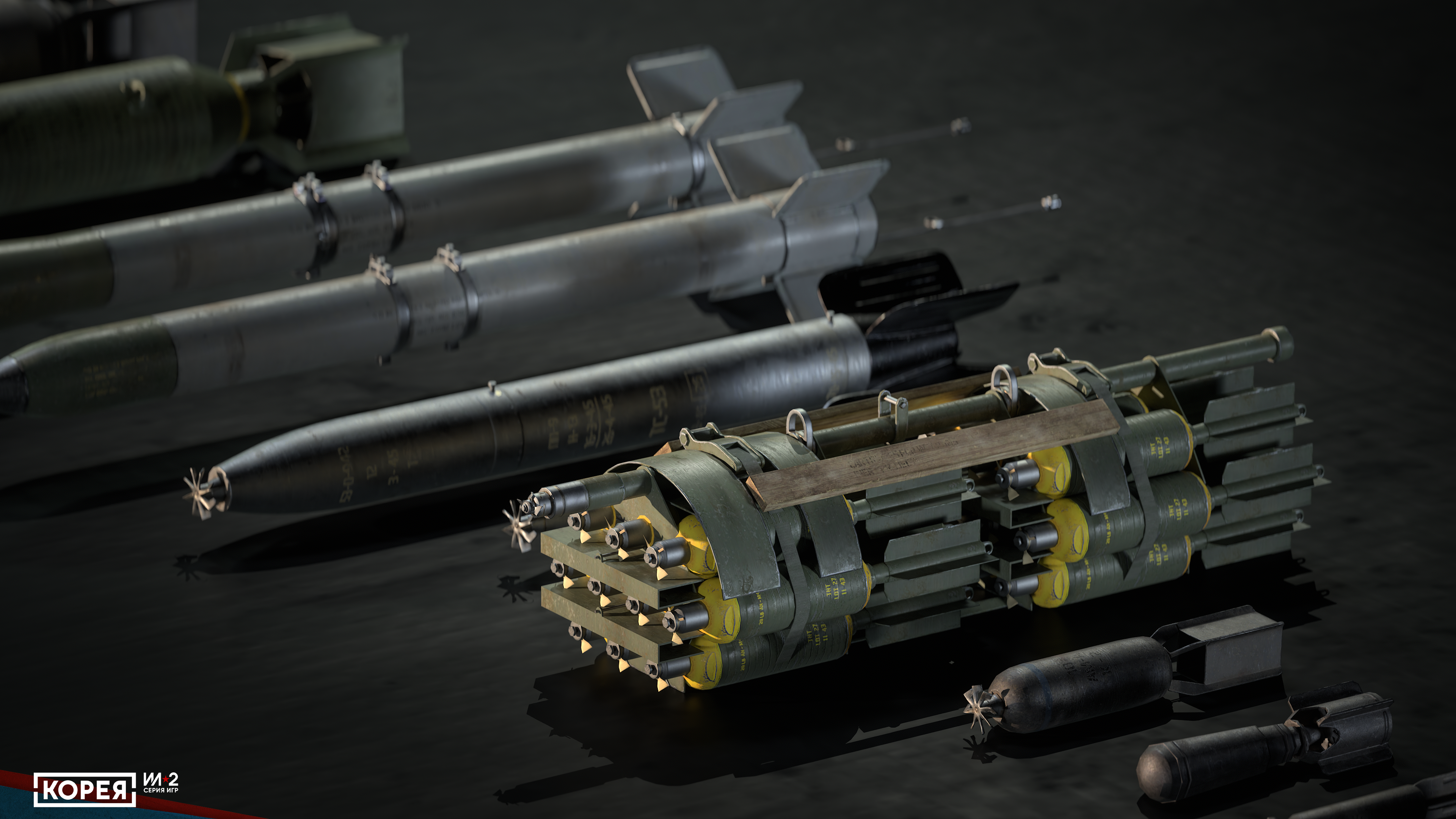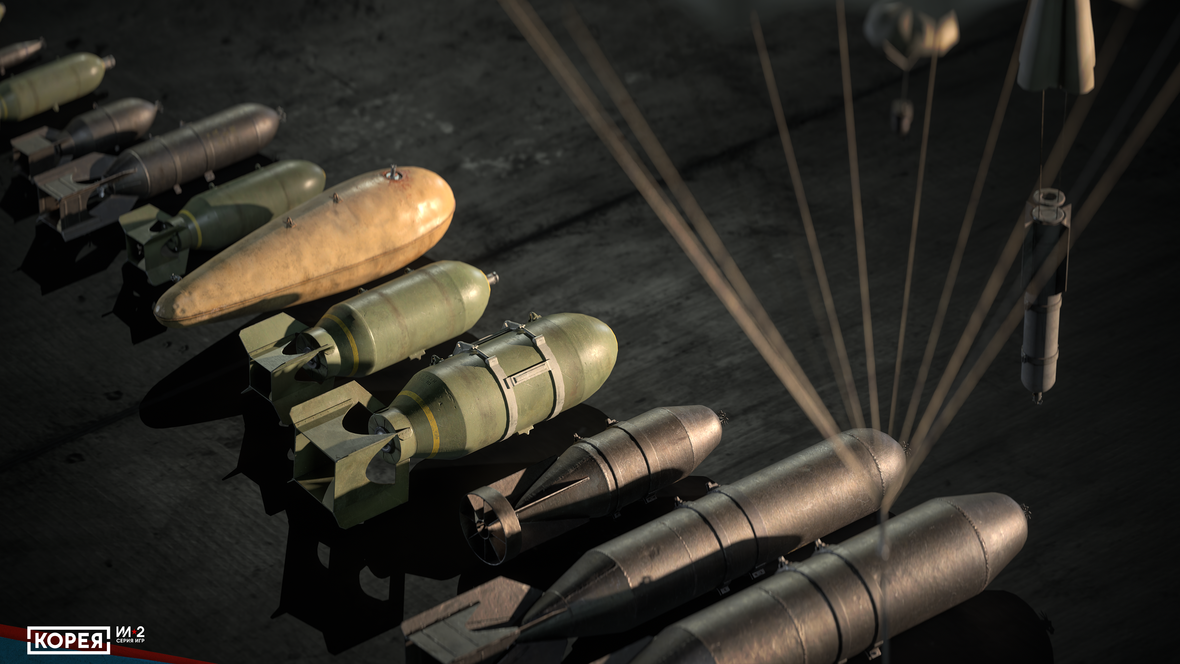Управляемые ИИ бомбардировщики, конечно же, имеют разнообразный арсенал бомб. Ту-2 нёс до 4 тонн бомб во внутреннем отсеке и на 4 точках внешней подвески. Тяжёлый B-29 в "Корее" может быть вооружён 500, 1000 и 2000-фунтовыми авиабомбами общей массой до 16000 фунтов внутри фюзеляжа.